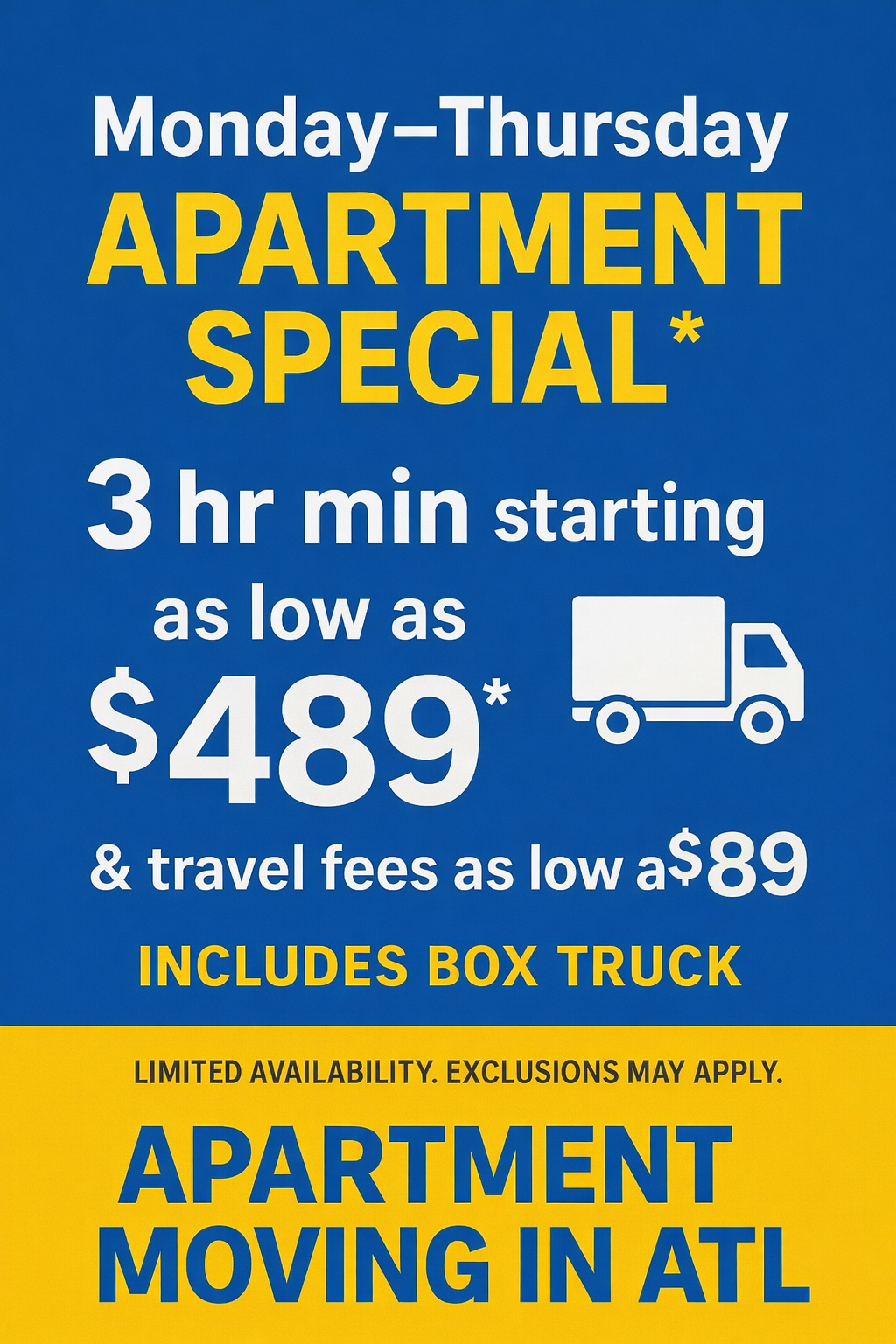 Booking a moving day requires $75 DEPOSIT: $5* are non-refundable & $70* will be credited towards your final invoice!